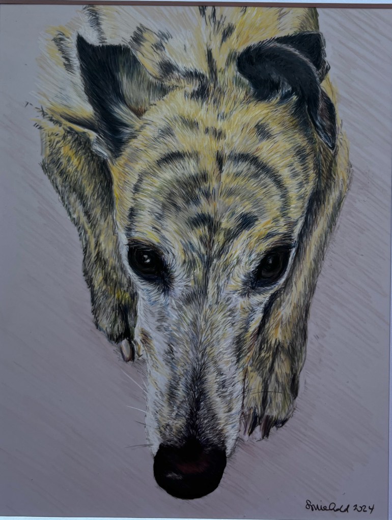 Since April 2021 I have been creating lino cut print art featuring greyhounds and sighthounds which are sold in my Etsy shop. In addition to selecting my own models I am also commissioned to do pet portraits and have built up a portfolio of beautiful four-legged models and some of these feature, with kind permission of their humans, below.